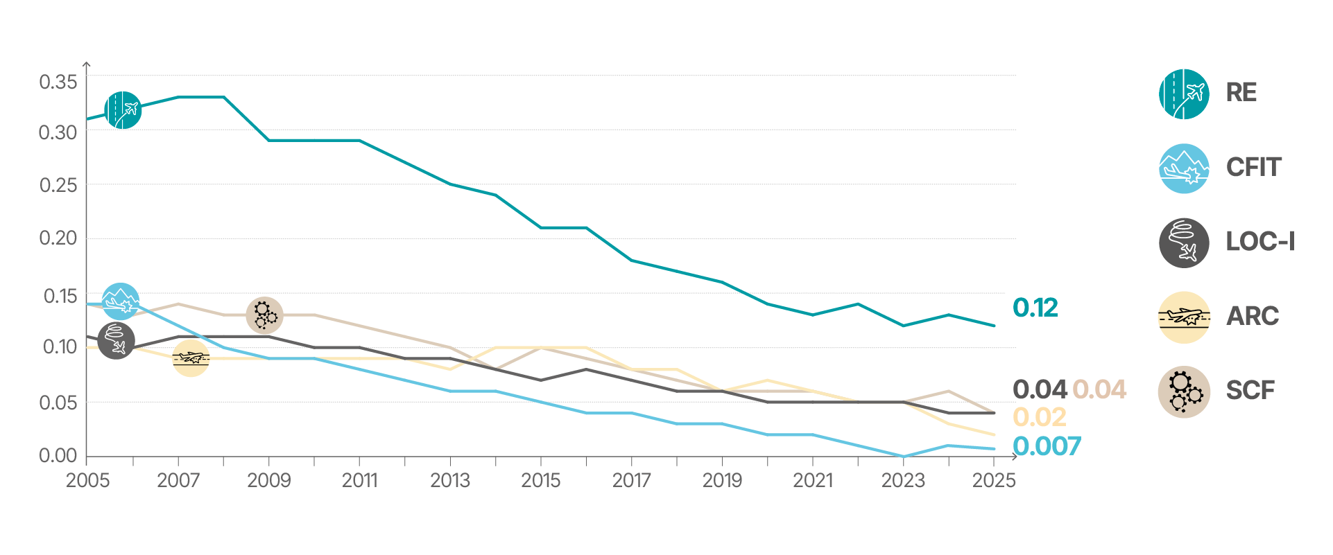 10 year moving average hull loss accident rate (per million flights) per accident category